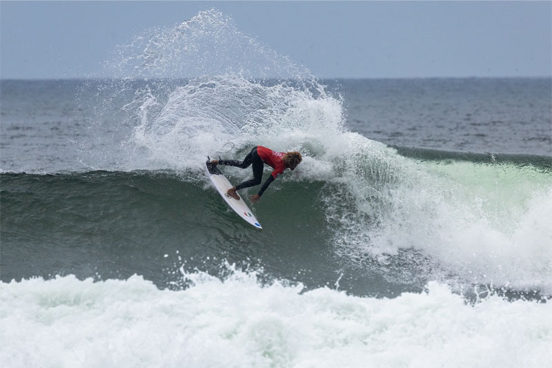 “Me sentí muy cómodo en esa ola y confiado,” dijo Monteiro. “Agarré una buena ola e hice lo mejor que pude. En mi primera ola me caí, así que sentí un poco de presión, pero luego encontré otra buena y después de esa puntuación me relajé y quedé muy feliz.”