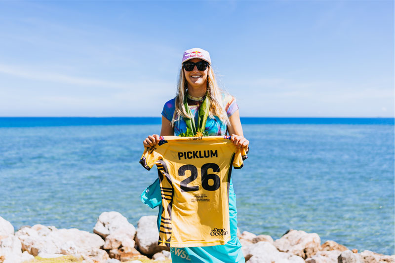 Picklum comparte draw con las dos últimas campeonas del mundo, Caity Simmers (USA) y Caroline Marks (USA), además de Gabriela Bryan (HAW) y Bettylou Sakura Johnson (HAW). Tanto Bryan como Johnson debutan en este formato y son las únicas hawaianas, junto a Carissa Moore (5x campeona del mundo) y John John Florence (3x campeón), en aparecer en las Finals.
