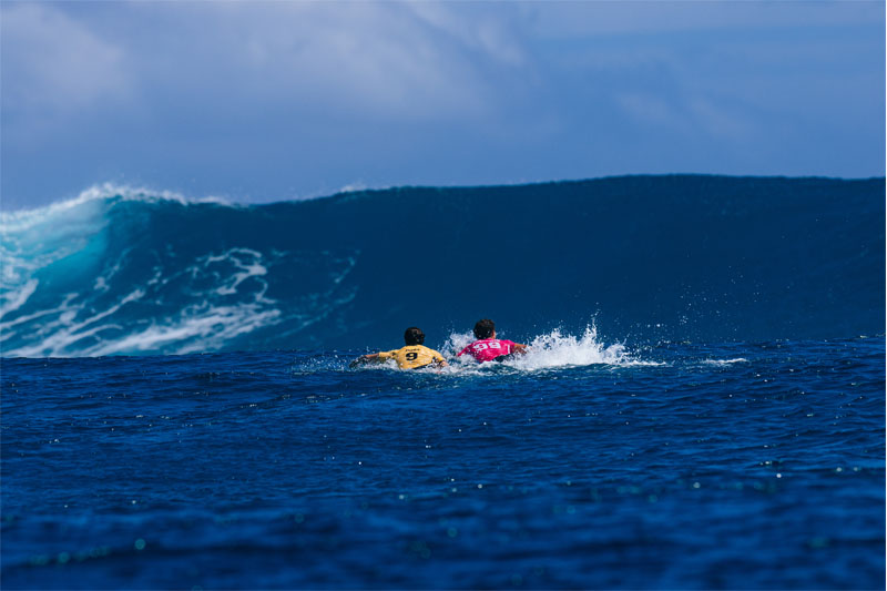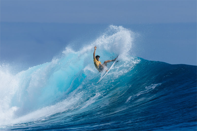 Durante días se había anunciado un swell épico que traería tubos masivos, pero el gran “big day” nunca llegó del todo. Cloudbreak, una de las izquierdas más poderosas del planeta, mostró su versión más contenida: olas de entre 4 y 6 pies, perfectas pero sin el dramatismo prometido. Lejos de decepcionar, el reef fiyiano ofreció un escenario ideal para la alta competencia. Con tubos técnicos y secciones rápidas, exigió precisión quirúrgica y una lectura del mar al milímetro.