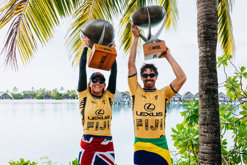 Molly Picklum (AUS) y Yago Dora (BRA) se consagraron campeones del mundo 2025 en el Lexus WSL Finals Fiji Presented by Corona Cero, la última parada del Championship Tour (CT) 2025 de la World Surf League (WSL). Ambos, Picklum y Dora, llegaron al evento definitorio como sembrados Nº1 y lograron exhibiciones espectaculares en olas de entre metro y medio y dos metros en Cloudbreak para conquistar sus primeros títulos mundiales.