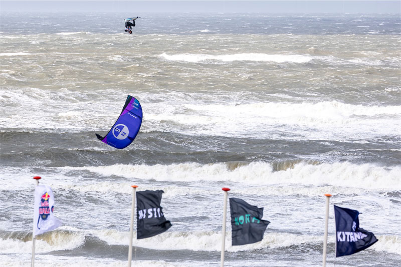 Durante dos años, riders y fans habían estado esperando las condiciones extremas necesarias para que se pudiera llevar a cabo esta sexta edición del Red Bull Megaloop. Y finalmente, el lunes 15 de septiembre, la mítica competencia de kitesurf se puso en marcha. Los organizadores dieron luz verde solo 48 horas antes del evento, y los kitesurfistas de todo el mundo volaron a Noordwijk, ciudad natal de la leyenda neerlandesa del kitesurf Ruben Lenten. Con vientos alcanzando fuerza 8, olas de 3 metros y una corriente potente, 22 riders se lanzaron al agua listos para clavar el Megaloop —uno de los trucos más exigentes del kitesurf.