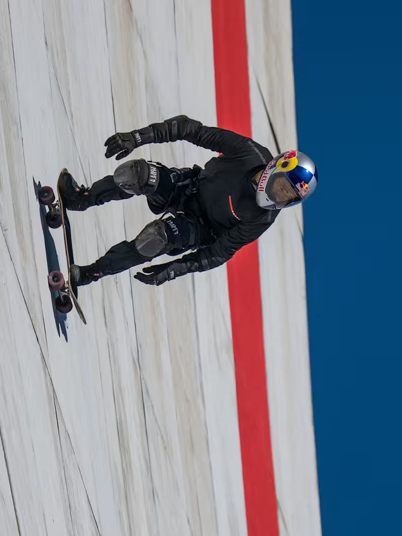 Apodada por los fanáticos locales como la “rampa definitiva de skate”, la imponente estructura del CAFF, de 88,91 metros de altura, fue transformada en un skatepark temporal gracias a una superficie especial de madera contrachapada diseñada para la ocasión. Desde un punto inicial a 55 metros del suelo, y llegando finalmente a los 70 metros, Dias dominó la pared casi vertical de la mega rampa con un control extraordinario, alcanzando velocidades comparables a las de un auto en la autopista… pero arriba de una tabla de skate común y corriente. La hazaña reflejó sus décadas de experiencia y dedicación al deporte. A los 50 años, el brasileño dejó en claro que la edad no es un límite cuando se trata de romper barreras.